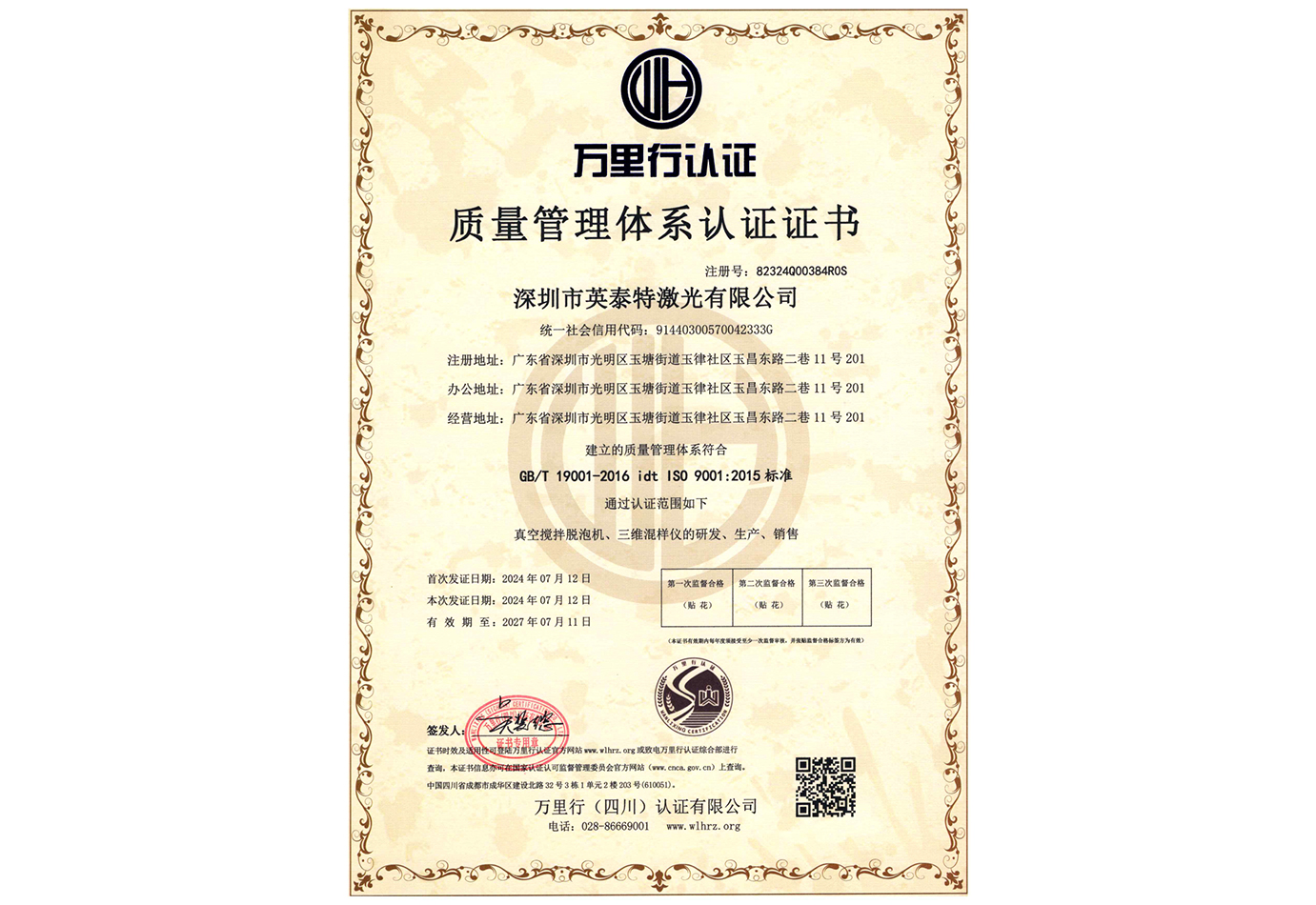 • 質量管理體系認證證書