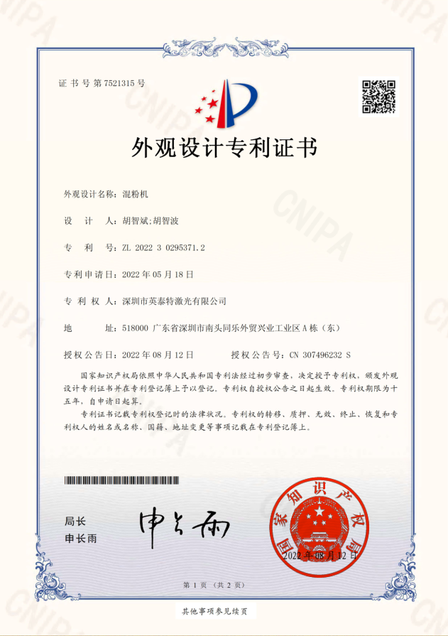 深圳市英泰特激光有限公司是一家有雄厚研發實力的公司,公司是中國領先的行星式攪拌、脫泡機生產廠家。我們圍繞客戶的需求持續創新與研發,在LED光電、銀漿、納米粉體材料、陶瓷粉末、高粘度涂料等高、尖、精領域材料的混合攪拌的解決方案。致力于為材料事業提供最佳的攪拌、脫泡方案。 產品攪拌均勻度、氣泡脫凈度、噪音控制為業界領先水平。同時我們設備優良的工程設計與制造技術,保證了設備的耐久性使用壽命。